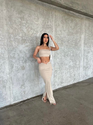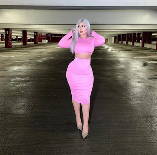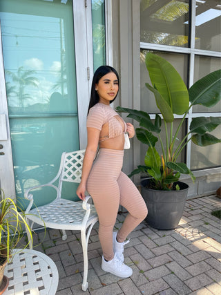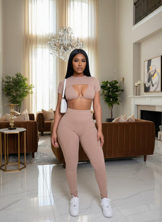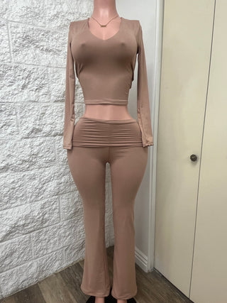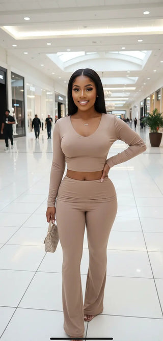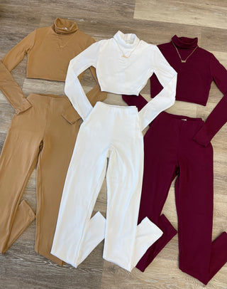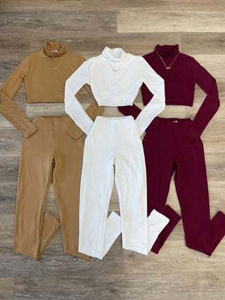 Leticia Long Sleeve Turtle Neck Crop Top and High Waisted Leggings